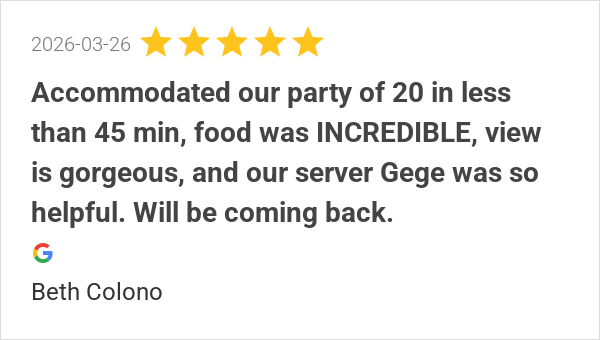 Accommodated our party of 20 in less than 45 min, food was I...
