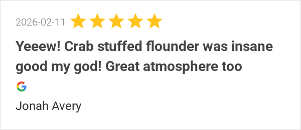 Crab stuffed flounder was insane good my god! Great atmosphe...