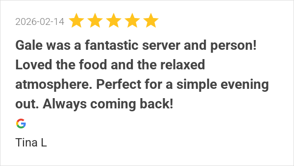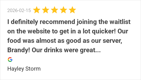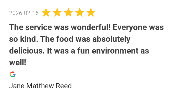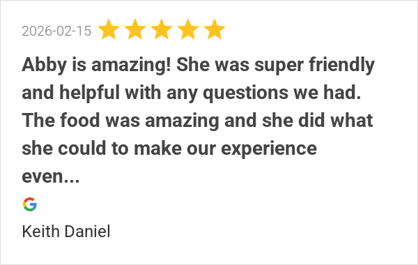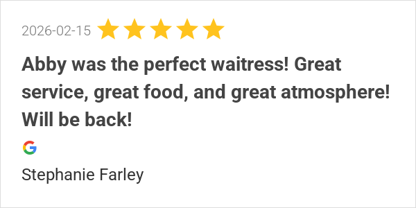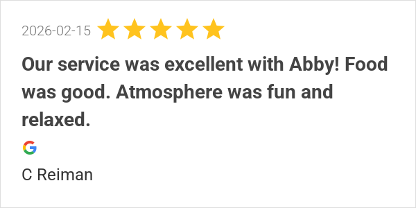 Our service was excellent with Abby! Food was good. Atmosphe...