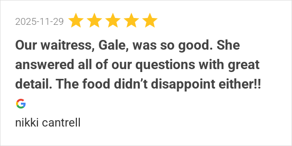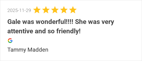 Gale was wonderful!!!! She was very attentive and so friendl...