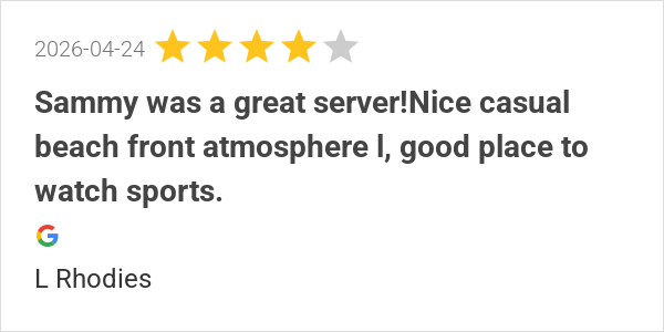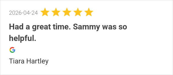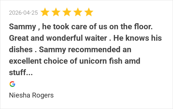Sammy was great the food was great environment is fantastic ...