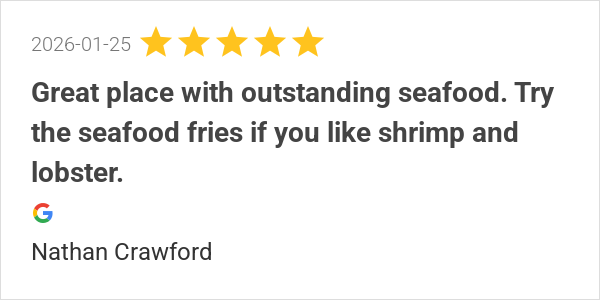 Great place with outstanding seafood. Try the seafood fries ...
