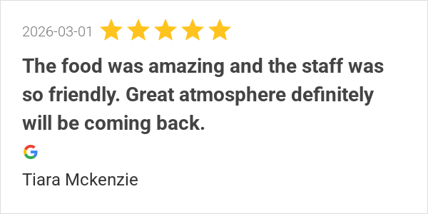 Food was wonderful! Atmosphere was fantastic especially at n...
