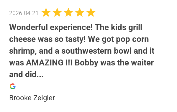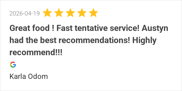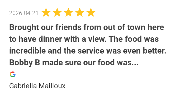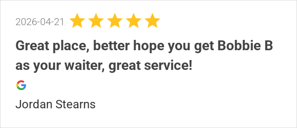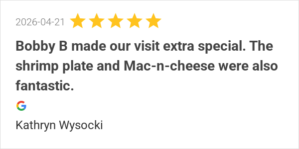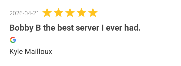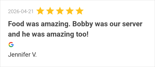 Great food, great service and great atmosphere. Bobby B was ...