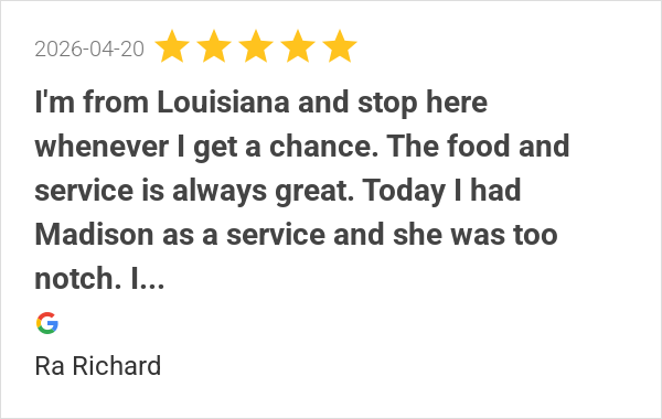 The people were great! The service was super quick. It was a...