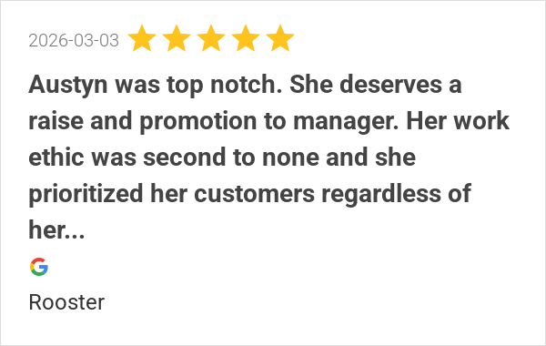 Austyn was top notch. She deserves a raise and promotion to ...