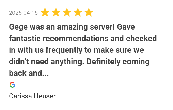 Gege was an amazing server! Gave fantastic recommendations a...