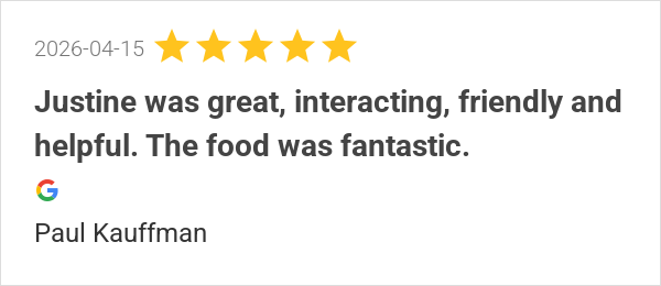 Justine was awesome!! Great service and very personable.