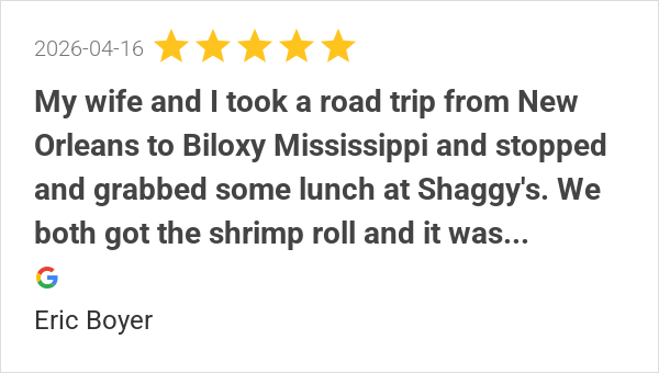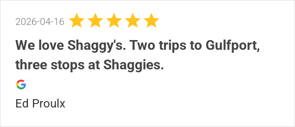 We love Shaggy's. Two trips to Gulfport, three stops at Shag...