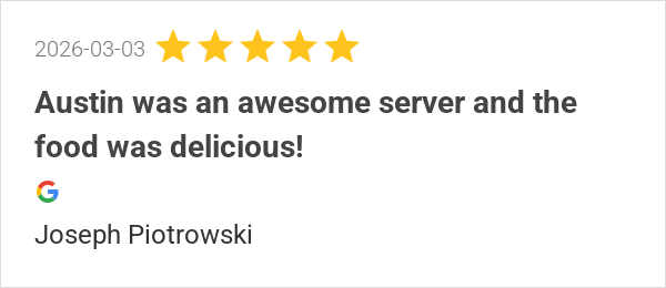 Austin was an awesome server and the food was delicious!