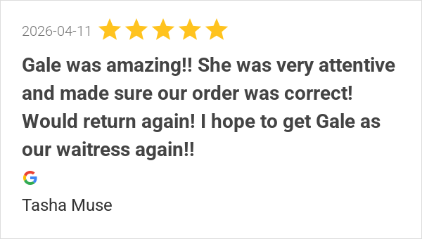 Gale is an amazing waitress and human being!
