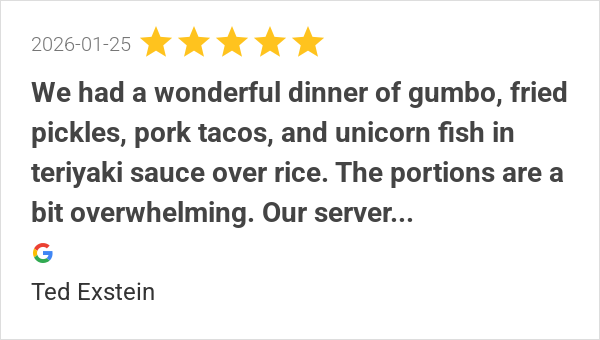 We had a wonderful dinner of gumbo, fried pickles, pork taco...