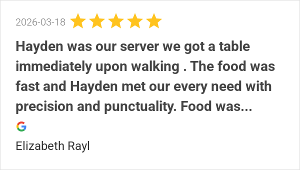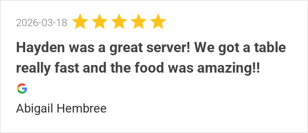 Hayden was a great server! We got a table really fast and th...
