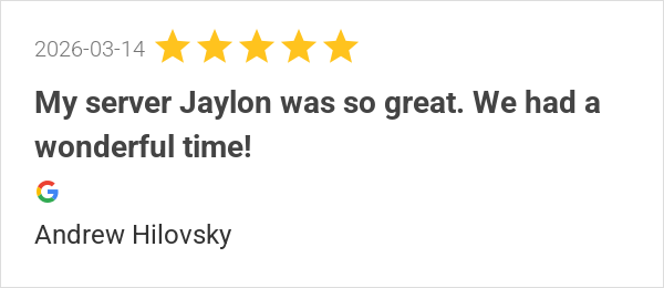 My server Jaylon was so great. We had a wonderful time!