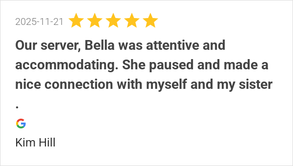 Our server, Bella was attentive and accommodating. She pause...