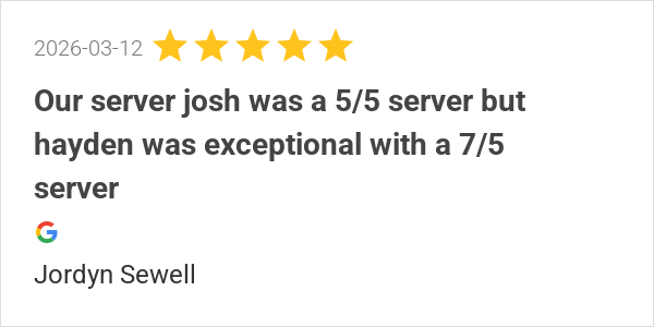 Our server josh was a 5/5 server but hayden was exceptional ...