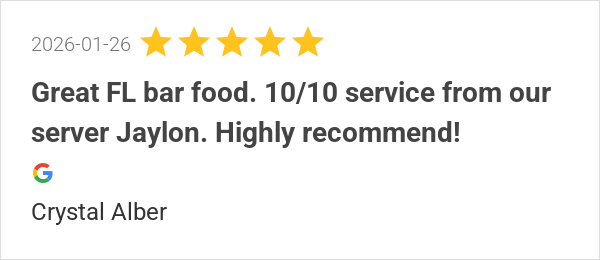 Great FL bar food. 10/10 service from our server Jaylon. Hig...