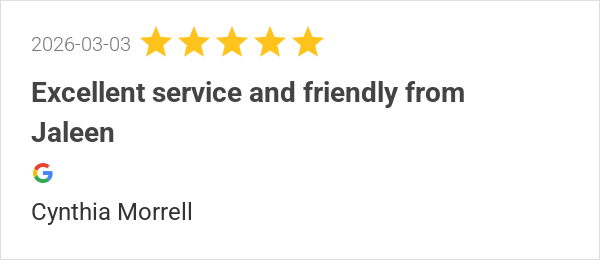 Excellent service and friendly from Jaleen