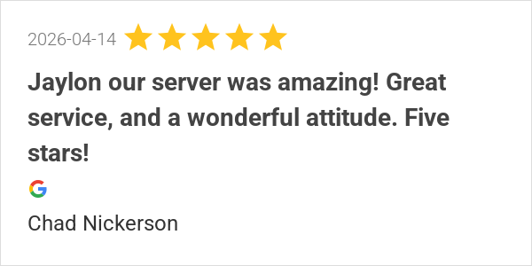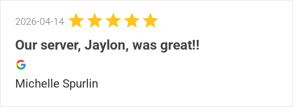 Jaylon our server was amazing! Great service, and a wonderfu...