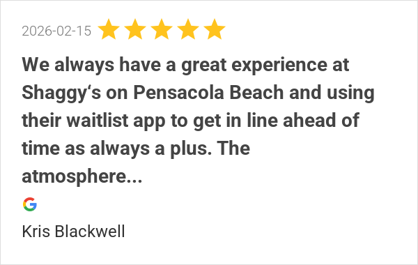 We always have a great experience at Shaggy‘s on Pensacola B...