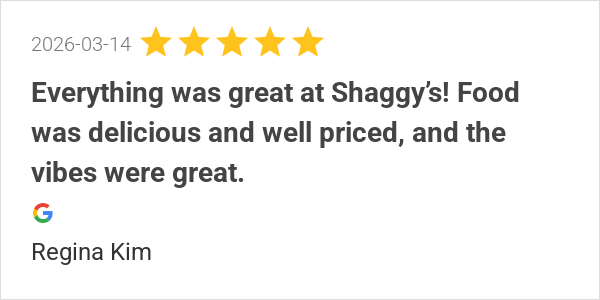 Everything was great at Shaggy’s! Food was delicious and wel...