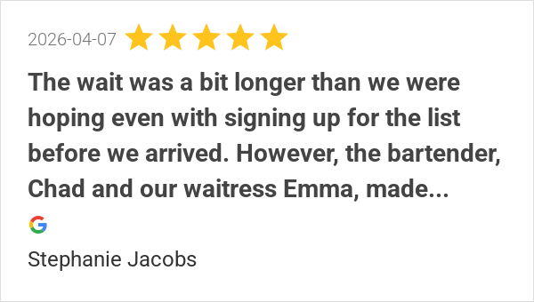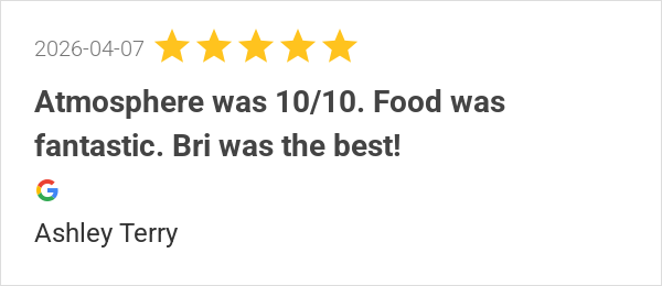 Atmosphere was 10/10. Food was fantastic. Bri was the best!
