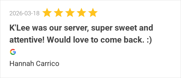 K'Lee was our server, super sweet and attentive! Would love ...