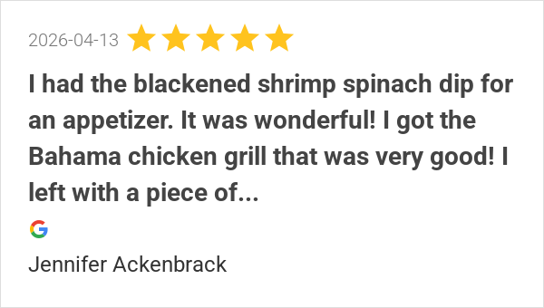 It was wonderful! I got the Bahama chicken grill that was ve...