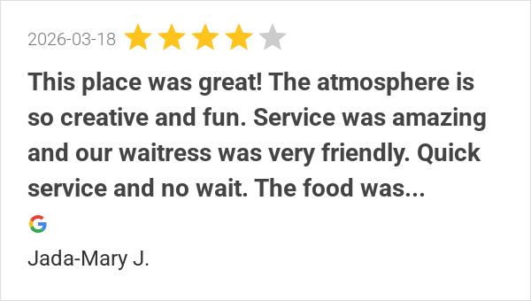 This place was great! The atmosphere is so creative and fun....
