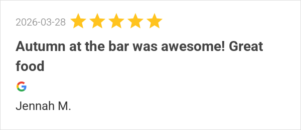 Autumn at the bar was awesome! Great food