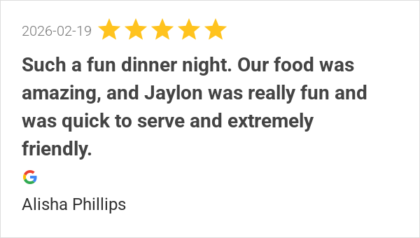 Such a fun dinner night. Our food was amazing, and Jaylon wa...