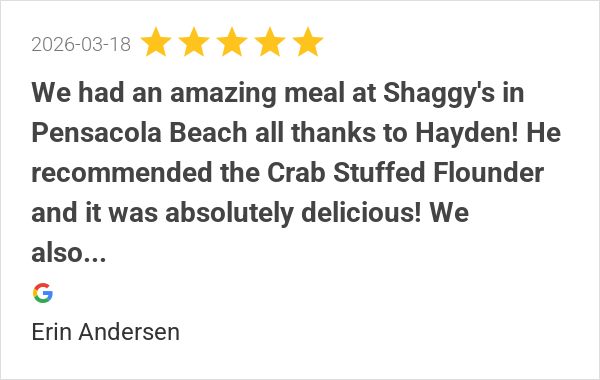 We had an amazing meal at Shaggy's in Pensacola Beach all th...