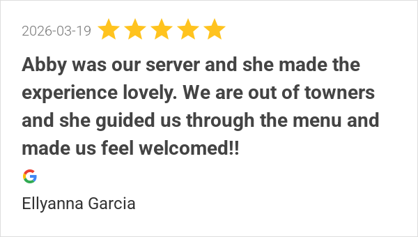 Abby was our server and she made the experience lovely. We a...