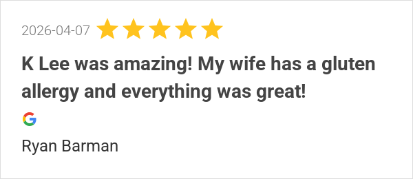 K Lee was amazing! My wife has a gluten allergy and everythi...