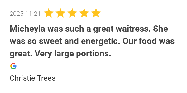 Micheyla was such a great waitress. She was so sweet and ene...