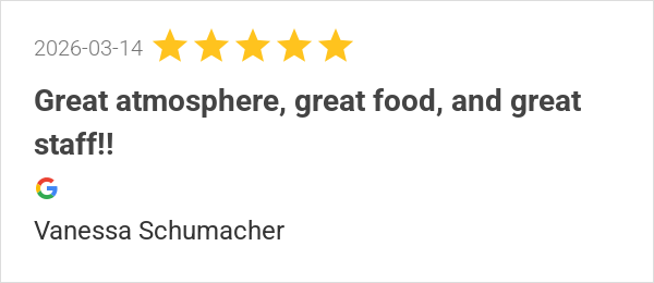 Great atmosphere, great food, and great staff!!