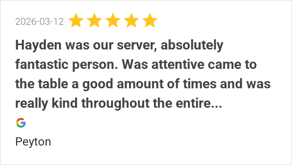 Hayden was our server, absolutely fantastic person. Really r...