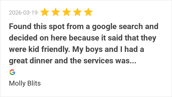 My boys and I had a great dinner and the services was amazin...