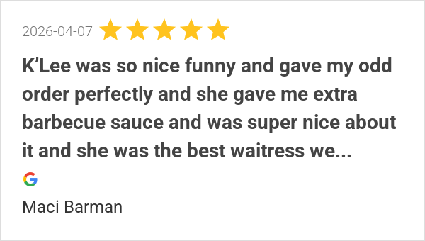 K’Lee was so nice funny and gave my odd order perfectly and ...