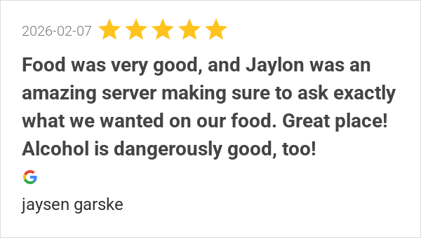 Alaina gave perfect service. Food and drinks we happily enjo...