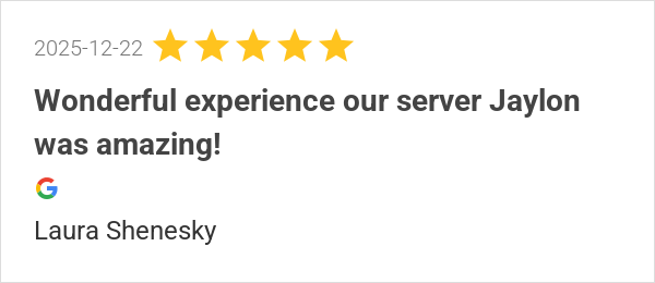Wonderful experience our server Jaylon was amazing!