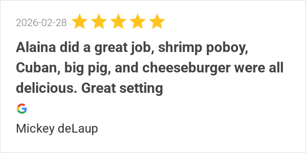 Alaina did a great job, shrimp poboy, Cuban, big pig, and ch...