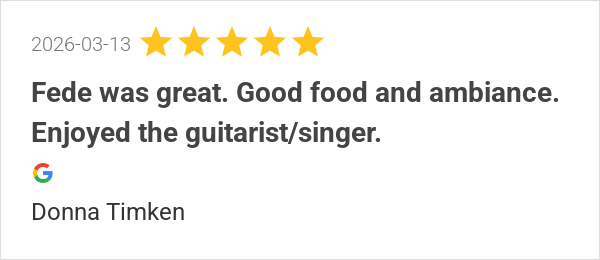 Fede was great. Good food and ambiance. Enjoyed the guitaris...