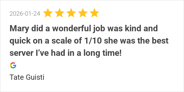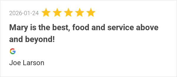 Mary is the best, food and service above and beyond!