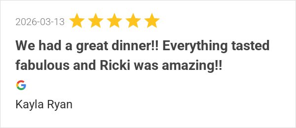 We had a great dinner!! Everything tasted fabulous and Ricki...