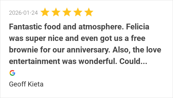 Fantastic food and atmosphere. Felicia was super nice and ev...