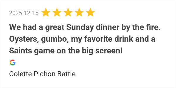 We had a great Sunday dinner by the fire. Oysters, gumbo, my...