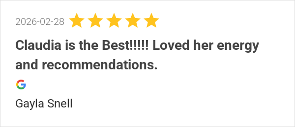 Claudia is the Best!!!!! Loved her energy and recommendation...