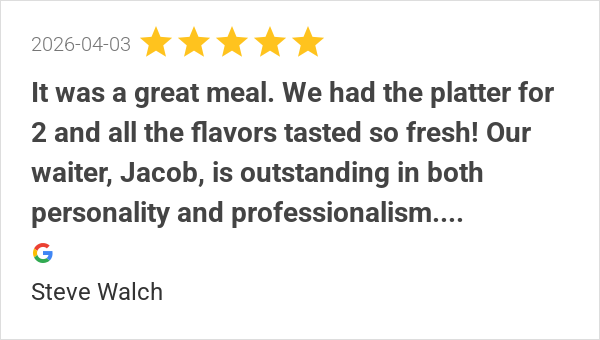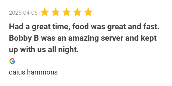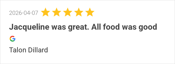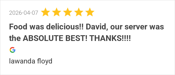 Food was delicious!! David, our server was the ABSOLUTE BEST...