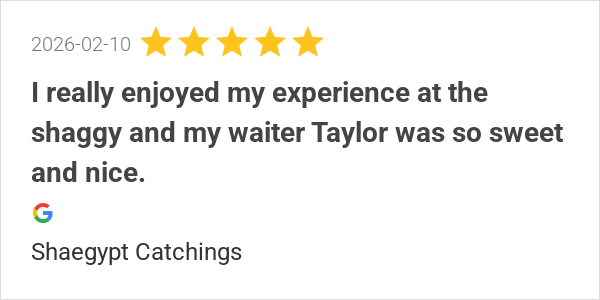 I really enjoyed my experience at the shaggy and my waiter T...